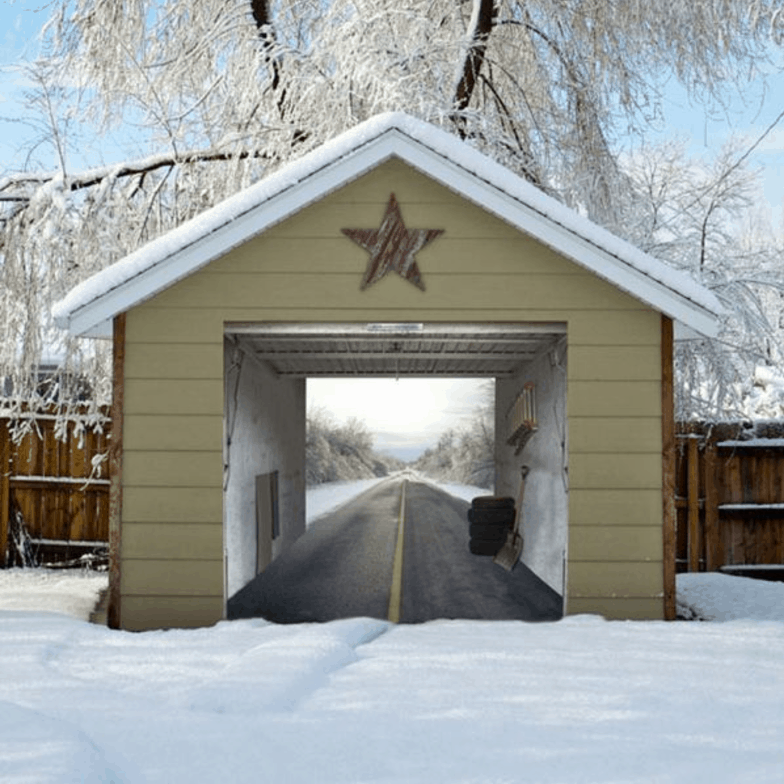 This garage door decal totally plays tricks on my mind, I’m laughing so much! But it’s a snowy one so it would only work when there is snow on the ground.