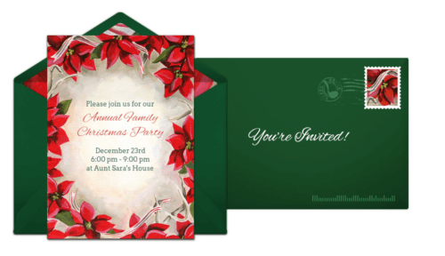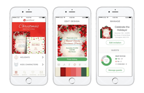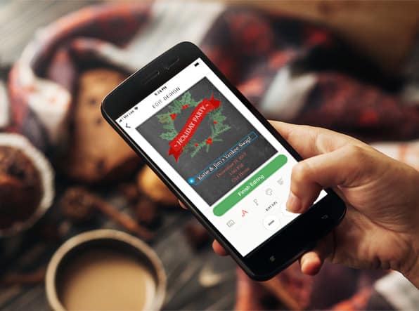 If it’s the look and feel of paper invitations you’re after, take a look at the gorgeous Holiday invitation collection from Punchbowl. Punchbowl has beautiful digital invitations that actually look just like paper, which you can personalize from your desktop, tablet, or phone. Yep, that’s right – you can send online invitations right from your phone! How cool is that? The app, available on the App Store and Google Play, offers hundreds of beautiful invitations that you can personalize and send to party guests for FREE.
