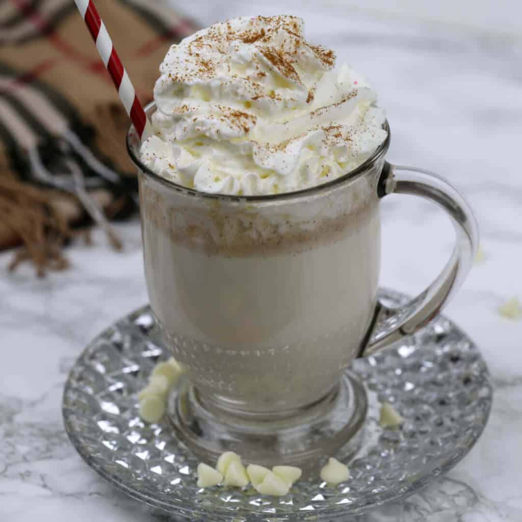 This easy hot chocolate recipe is made with milk and white chocolate chips. It’s creamy and oh so delicious!