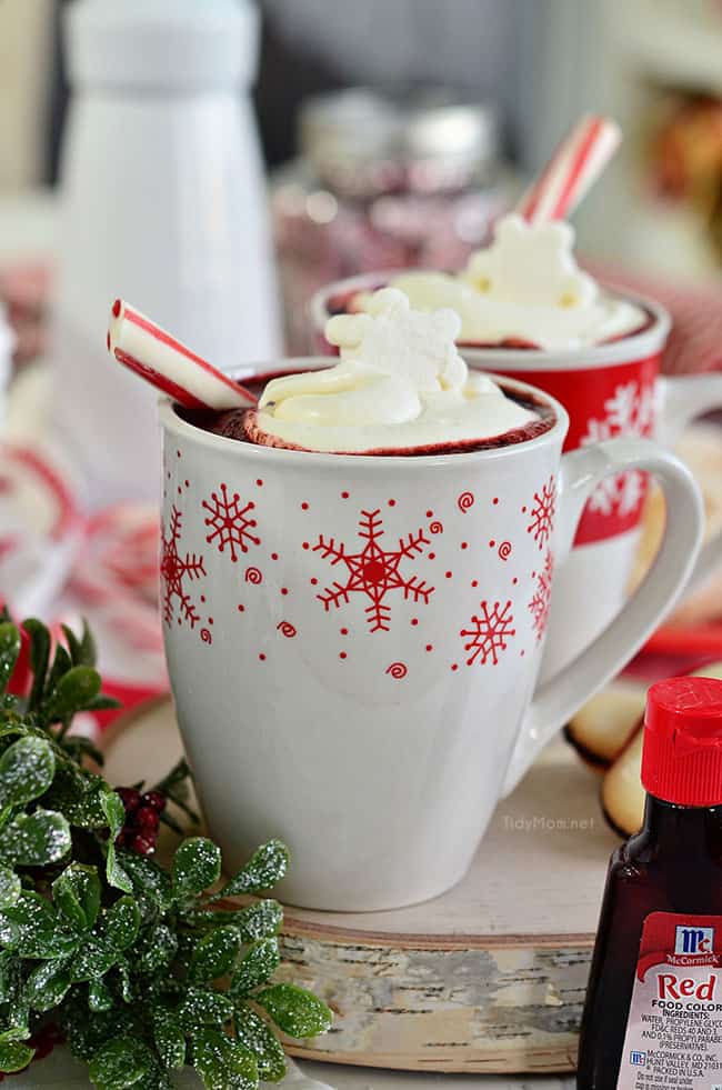 Red Velvet Hot Chocolate – Tidy Mom This recipe features a cream cheese frosting. It’s AMAZING!